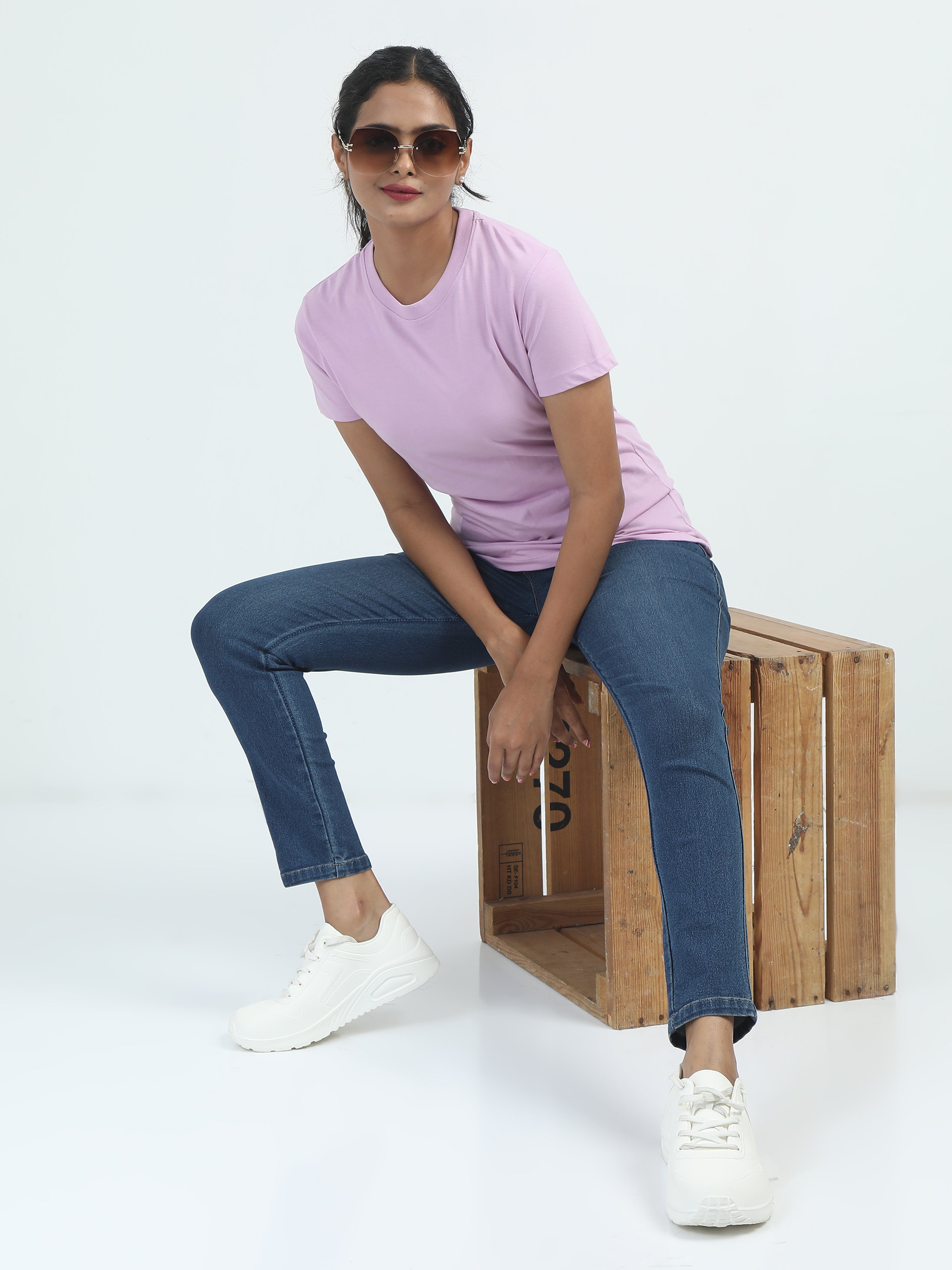 Experience Everyday Comfort With Our Women's Solid Crew Neck T-Shirt – A Wardrobe Essential Designed For Effortless Style. Made From Bio-Washed Cotton, This Tee Offers A Soft Hand Feel, Ensuring All-Day Comfort.