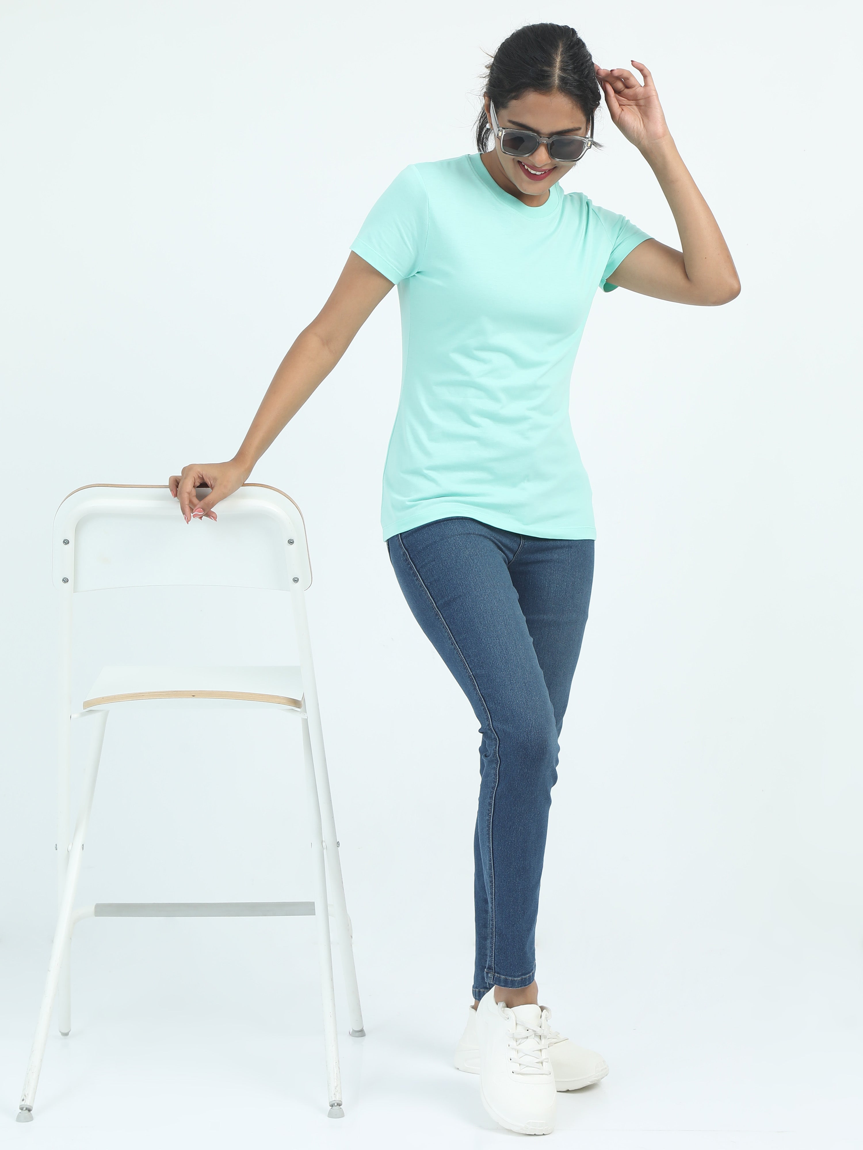 Experience Everyday Comfort With Our Women's Solid Crew Neck T-Shirt – A Wardrobe Essential Designed For Effortless Style. Made From Bio-Washed Cotton, This Tee Offers A Soft Hand Feel, Ensuring All-Day Comfort.